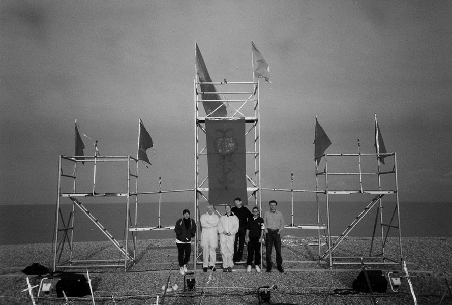 The last year of the Project saw another brace of productions. One was an intimate staging of Waiting for Godot created in Deal library but spilling out for one evening onto the beach where Pericles had arrived three years before. The other was entirely on the beach – a reworking of Shakespeare’s Julius Caesar as Caesar on the Beach.
